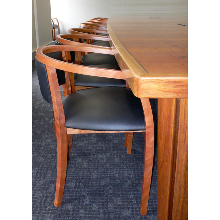This 18 seat boardroom table and chairs was designed and crafted for the College of Intensive Care Medicine, Melbourne. All power and data requirements are handled via two stainless steel access ports in the table top.