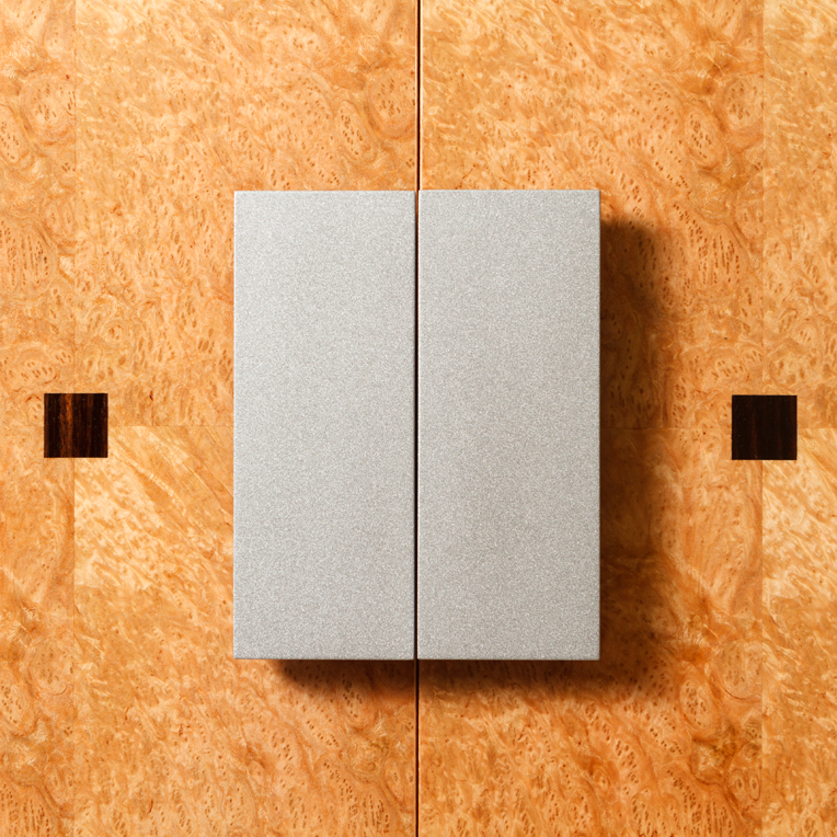 It’s something you’ll notice features often in my work. Here we have the repetition of 60 slip matched Eucalypt Burl veneer panels, combined with 90 inlaid Macassar Ebony squares.