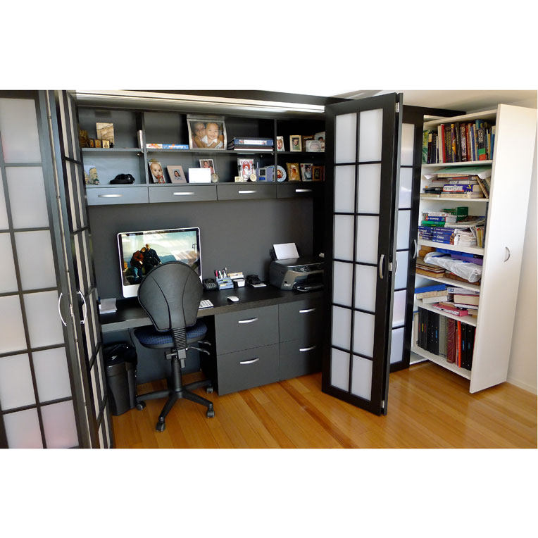 This Japanese style cabinet was built into a large warehouse apartment for storage and a home office.