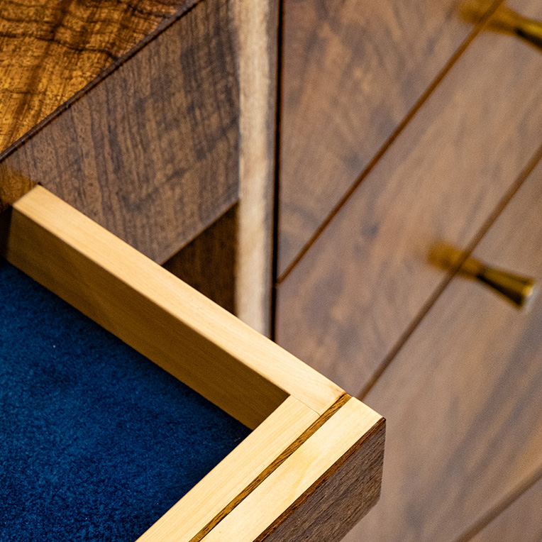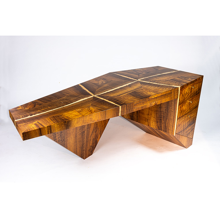 Inspired to experiment with materials and push the boundaries of structure and design, Anton selected pieces of Fiddleback Blackwood considered too twisted and irregular for orthodox furniture making.