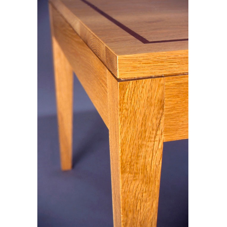 A flush side, contemporary coffee table, with a shadow line and inlay detail.