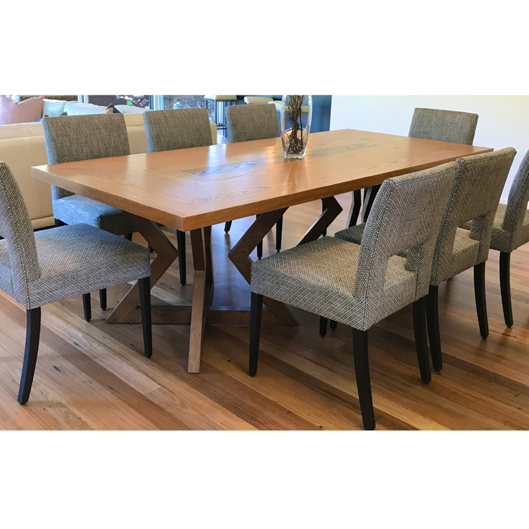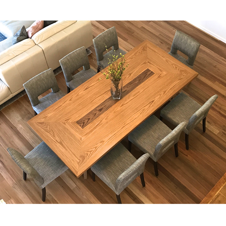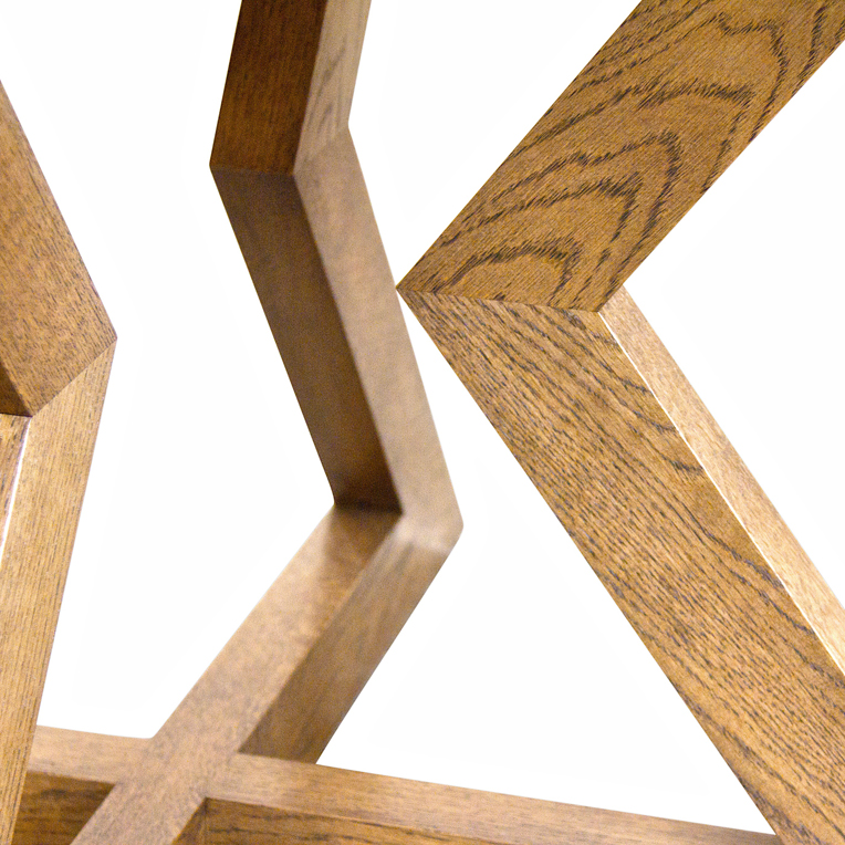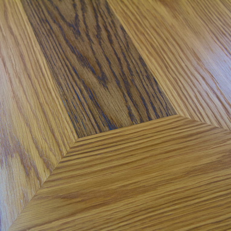 American Oak, with a stained Oak inlay and stained Zig Zag base.